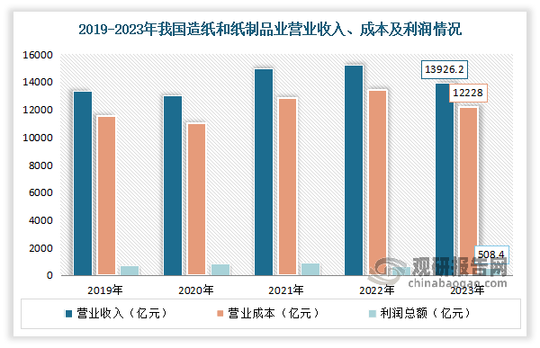 按照不雅研演讲网发布的《中国木材行业成长深度阐发取投资前景预测演讲(2024-2031年)》显示,颠末多年的成长,我国制纸工业逐渐成长强大,纸成品市场已从过去紧缺型变成根基均衡型,且已构成产需根基均衡的款式,大都产物已根基满脚国内市场需求。取此同时,制纸工业也越来沉视质量的提高。现正在正正在不竭调整财产布局,裁减规模小、污染大、能耗高的小型设备,同时积极投入高车速、大幅宽的新型制纸机。轮回、低碳、虽然2023年因为市场需求削弱、以及外部变化等问题叠加,使得制纸行业全体出产和运转坚苦增加。但跟着财产对高质量成长和低碳绿色纸业的认识不竭提拔,通过加强立异能力,添加新动能,合理无效节制新减产能,制纸财产总体仍然连结不变成长态势。数据显示,2023年全国制纸和纸成品业停业收入13926。2亿元,同比下降2。4%;停业成本12228亿元,同比下降3。1%;利润总额508。4亿元,同比增加4。4%。
